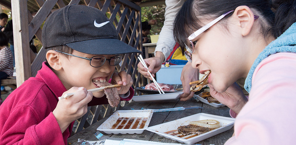 宮ヶ瀬湖でのバーベキューの魅力は、澄んだ空気とおいしい水。お肉は地元産の「清川恵水(めぐみ)ポーク」を使用しています。きめが細かくやわらかい肉質と、さらりとして甘みがある脂がお肉のおいしさを一層引き立てています。