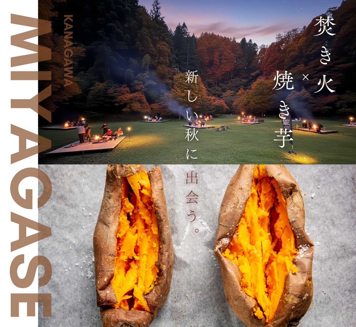 秋限定の「宮ヶ瀬焚き火ラウンジ」を10月25日に開催します。焚き火と焼き芋なんて、とても懐かしく感じられます。大自然に囲まれた宮ヶ瀬ならではのイベントです。